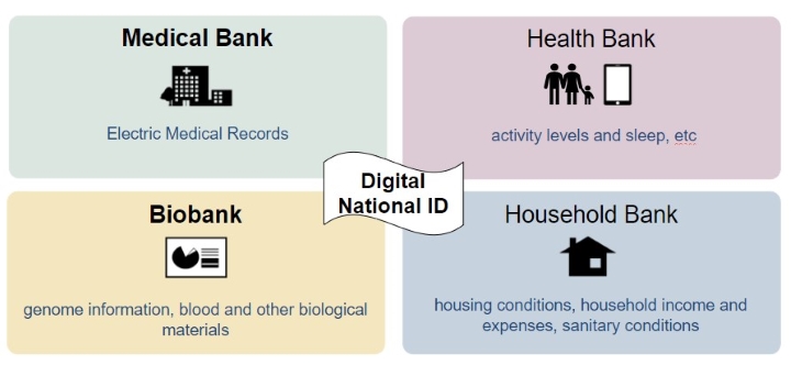 Under the ongoing technical cooperation project, “Project for Strengthening Government Capacity for Using Digital Technology and Data in Bhutan,” four digital databanks and a data sharing platform utilizing the already established digital national ID are being developed (Fig.1). The four digital databanks are: Medical Bank (electronic medical records), Health Bank (health data collected by wearable devices, such as activity levels and sleep), Household Bank (housing conditions, household income and expenses, sanitary conditions, etc.), and Biobank (genome information, blood and other biological materials). Personal health data accumulated in each of these databanks will be called up using national IDs, with the aim of providing better diagnosis and treatment for each patient by referring not only to test results and past medical history, but also the housing environment and daily living conditions. Since data from all hospitals will be consolidated, it will also be possible to provide more efficient health services, such as sharing test results received at other hospitals to avoid the need for repeat tests. It is also planned that by analyzing data from the entire population, the Bhutanese government will be able to make better decisions and optimize resources for health services by region and for specific populations.
