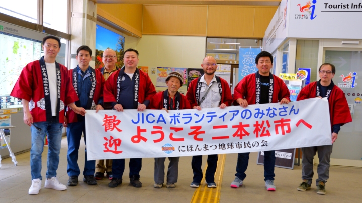 Members of the Nihonmatsu Global Citizens’ Association warmly welcoming trainees at Nihonmatsu Station.