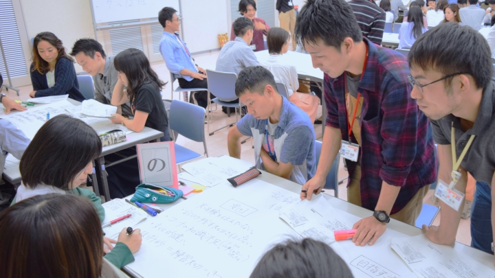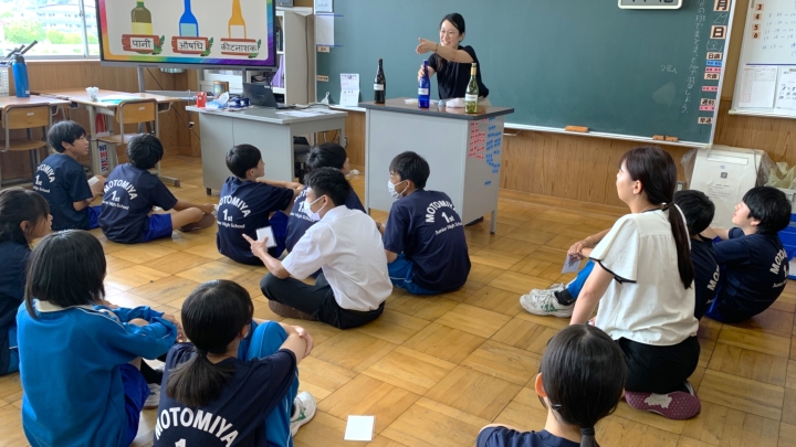 A workshop being held as an outreach class at a junior high school in Fukushima Prefecture.