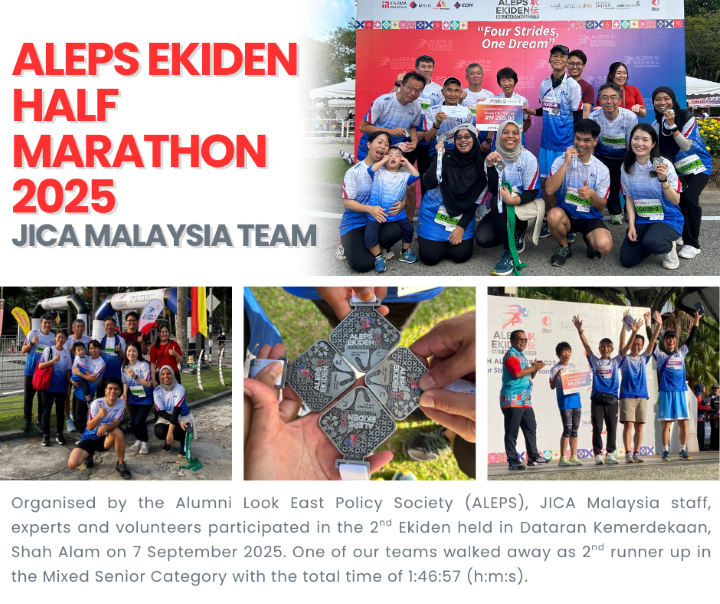 “ALEPS EKIDEN Half Marathon 2025” brought together about 1,200 participants, including three mixed teams from JICA composed of JICA volunteers, JICA experts, and JICA staff. One of the teams earned the third place in the mixed senior category. Under the banner of our shared vision—“Leading the world with trust”—we hope to keep passing the tasuki from Japan to Malaysia, from Malaysia to Japan and beyond, from today into the future, without ever letting it fall from our grasp.