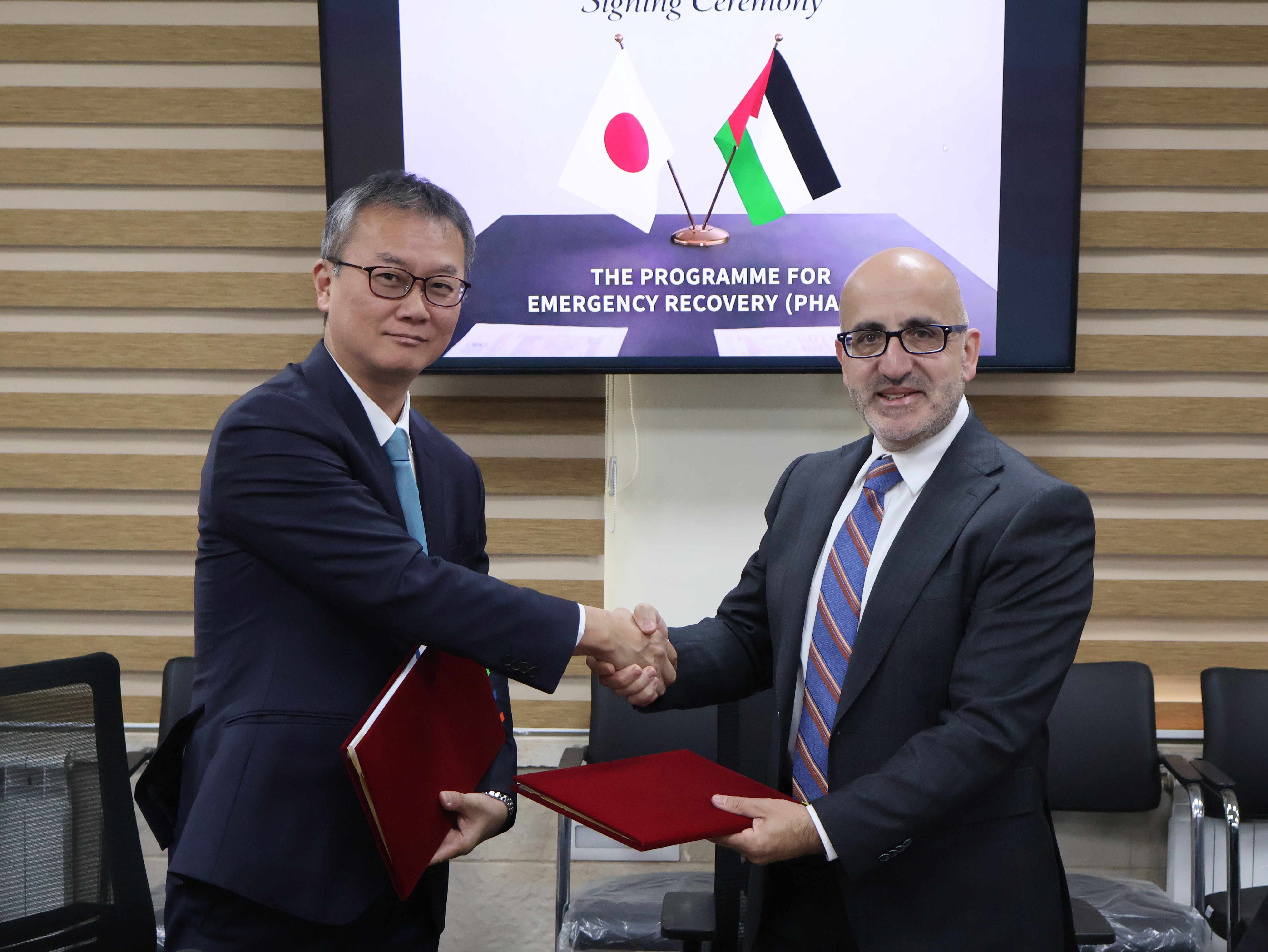 On February 15, the Japan International Cooperation Agency (JICA) signed a grant agreement with the Palestinian Authority in Ramallah, to provide grant aid for the Programme for Emergency Recovery (Phase 2). The signatures were exchanged between Minister Estephan Salameh of Ministry of Finance and Planning, and Chief Representative Hoshi Mitsutaka of the JICA Palestine Office