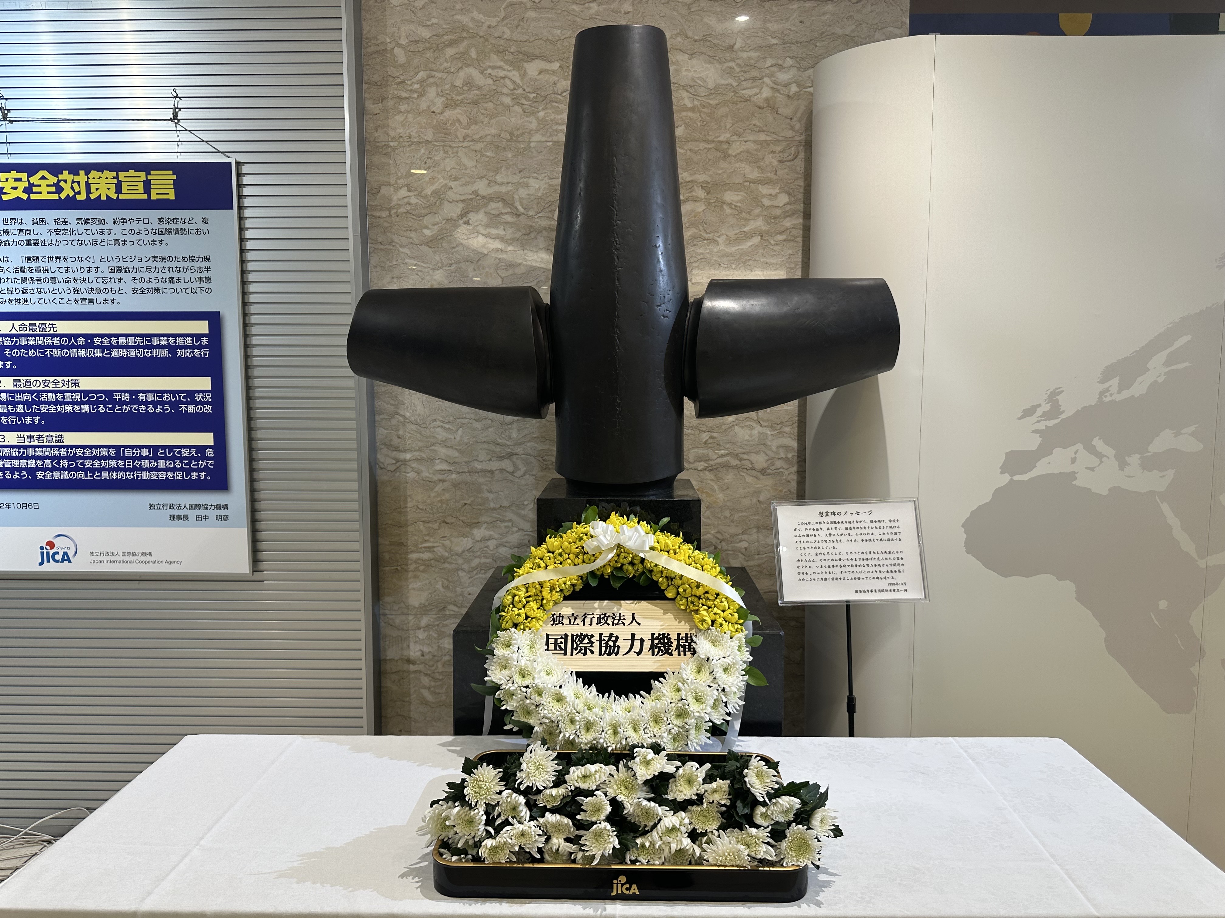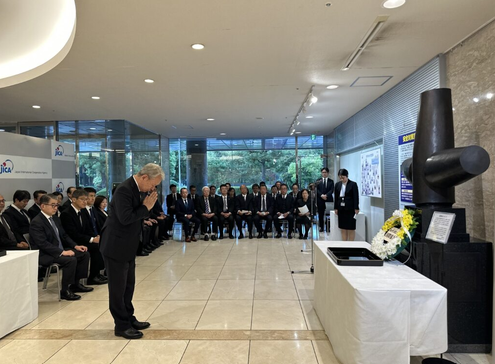 On October 29, 2025, the Japan International Cooperation Agency (JICA) held the 2025 Memorial Ceremony in front of the Monument for International Cooperation at its Ichigaya Headquarters. The ceremony is held every year to commemorate all those who have lost their lives in the course of JICA's operations, and to reaffirm JICA’s commitment to giving the highest priority to the lives and safety of those involved in international cooperation activities.