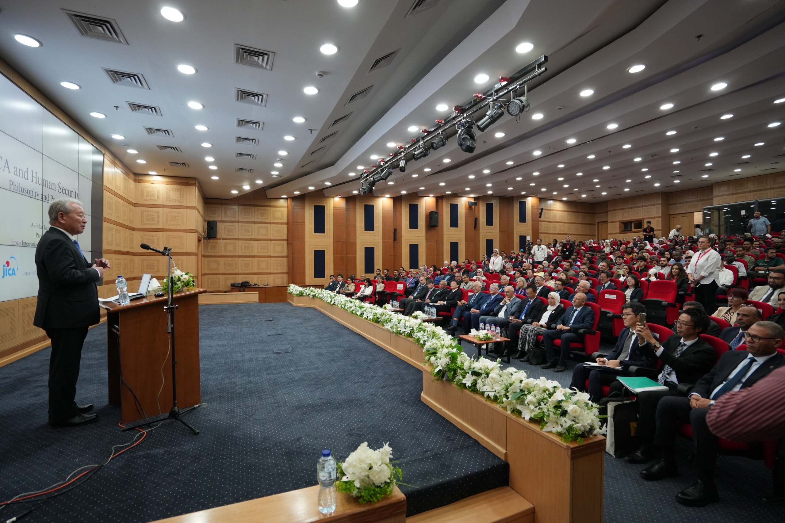 At the Egypt-Japan University of Science and Technology (E-JUST), President Tanaka delivered a lecture on the theme of "JICA and Human Security" to over 300 people, including students and faculty. He emphasized the importance of empowerment through education while introducing practical examples of JICA's projects in Egypt, the country situated in the unstable Middle East. During the Q&A session following the lecture, international students from Africa and Gaza expressed their gratitude for the scholarship program offered by JICA and E-JUST for African and Palestinian students.