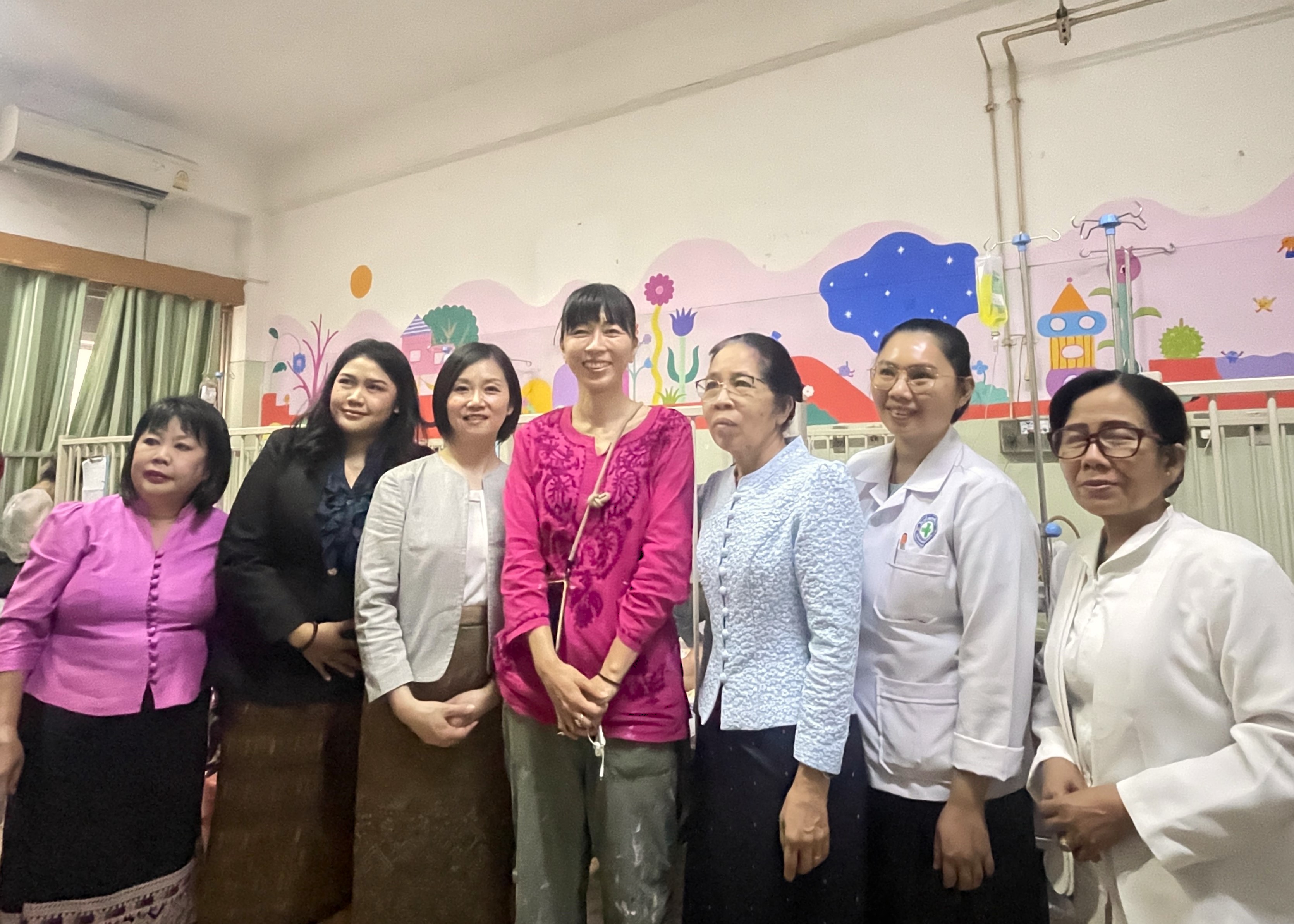 The project targets the pediatric ward at Setthathirath Hospital in Vientiane Capital, and the maternal and child health wing at Champasak District Hospital in Champasak province. Both facilities were constructed with JICA's support, and Setthathirath Hospital, built in 1999, is particularly showing its age. The mural creation took place over approximately two weeks at each site, starting in early January 2025.