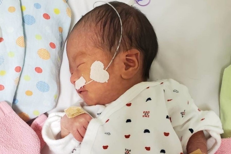 A baby is seen after being safely delivered at Kameda Medical Center Hospital after the mother used an iCTG device at home. (Image courtesy of patient)