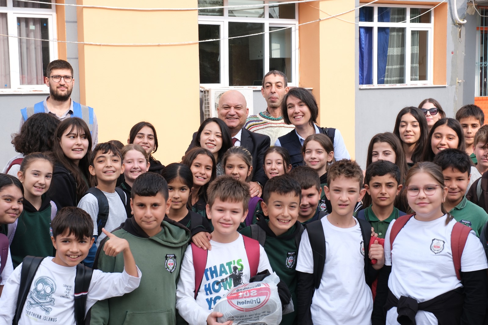 Students at a Turkish middle school that was reinforced with Japanese earthquake-resistant technology.