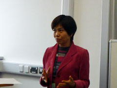 Ishikawa reported on Japan’s peacebuilding assistance in Mindanao, Philippines, using the peacemaking process between the Philippine government and Moro Islamic Liberation Front (MILF) as an example. The Japanese government promotes its “3P” strategies, namely Propaganda, Policy and Practice, as it advocates the concept of human security as a key component of its ODA. JICA bears a part of this practice through its ODA implementation, and Ishikawa presented a theoretical model showing how JICA's peacebuilding activities are perceived in the context of peace and conflict research. She explained how Japan’s peacebuilding assistance has changed under the concept of human security.