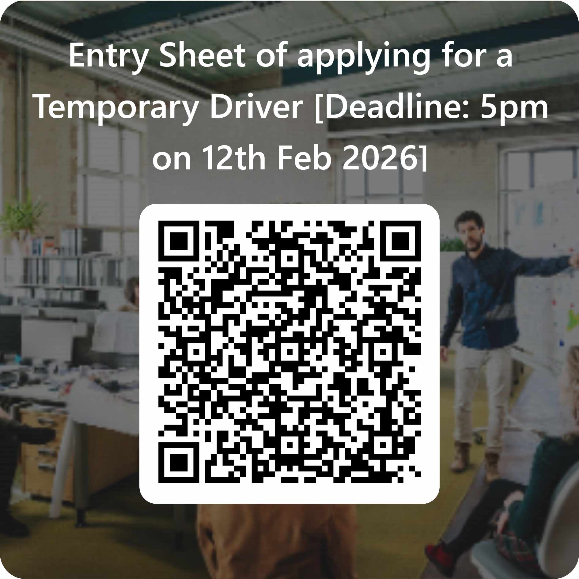 Entry Sheet of applying for a Temporary Driver [Deadline: 5pm on 12th Feb 2026]