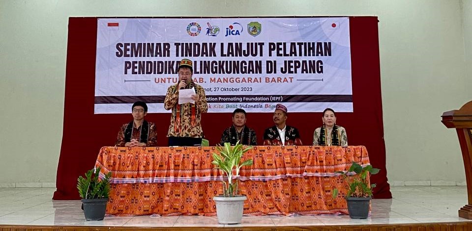 A follow-up seminar on environmental education training in Japan for the West Manggarai region was organized by Indonesian Education Promoting Foundation (IEPF). The seminar was attended by representatives of Japan International Cooperation Agency (JICA), the head of the Education Department of West Manggarai, and 69 school principals, supervisors, and 4th-grade elementary school teachers from the Komodo and Mbeliling districts.