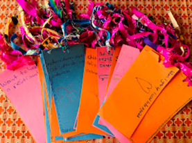 On the day of the event, the children were understandably confused, having never heard of Tanabata. But with my colleagues translating into Chichewa and cheering them on, we got started smoothly. The children wrote their dreams on the front of the cards and the reasons behind them on the back. They enjoyed drawing with colored pencils and were deeply engaged in their artwork. When they shared their dreams aloud, they applauded and encouraged each other. Finally, they tied their wishes to the trees, hoping they would come true.