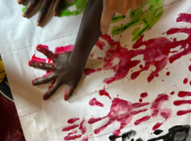 Handprint art is surprisingly difficult, but thanks to the help of JOCV and fellow staff, we were able to paint the Malawi flag! The children were delighted and even displayed it on the wall themselves.