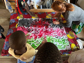 Following on from TANABATA, for our second challenge, we wanted the children to have fun by dipping their hands in paint and pressing their handprints onto paper to draw the Malawi flag. We wanted the children to enjoy the experience of working together to create something, so we collaborated with JOCV, who are in charge of Expressive Arts, to plan this activity!