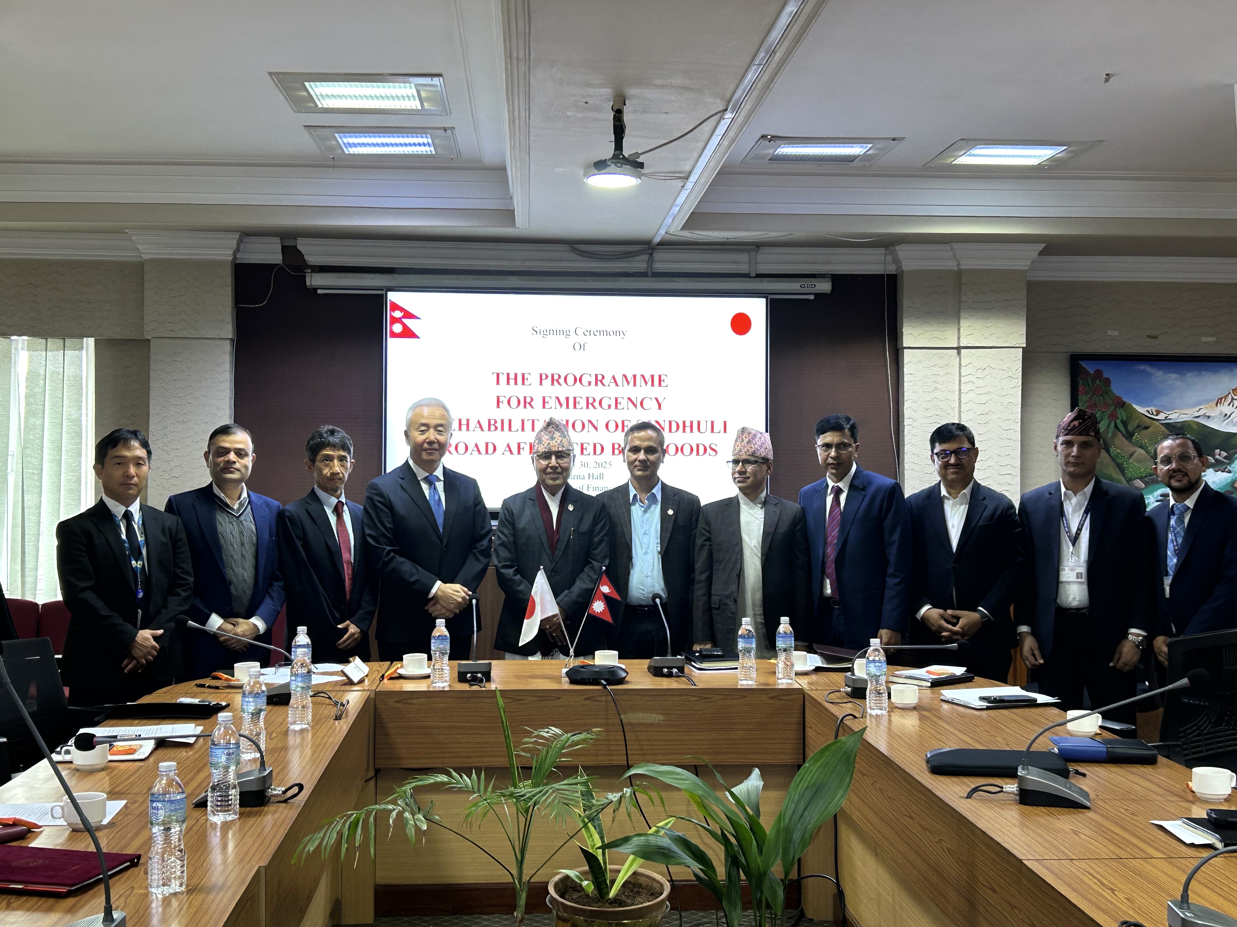 Government of Nepal and JICA have signed Grant Agreement to provide Grant Aid up to 2.8 billion Japanese Yen (NPR 2.6 billion) for the “Emergency Rehabilitation of Sindhuli Road Affected by Floods”.