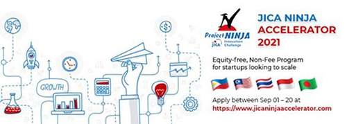 Dubbed JICA NINJA (Next Innovation with Japan) Accelerator program is a 9-week, no-fee acceleration program starting mid-Oct 2021. The purpose of the program is to support entrepreneurs and create business innovation in emerging countries like the Philippines, Indonesia, Malaysia, Thailand and Bangladesh.