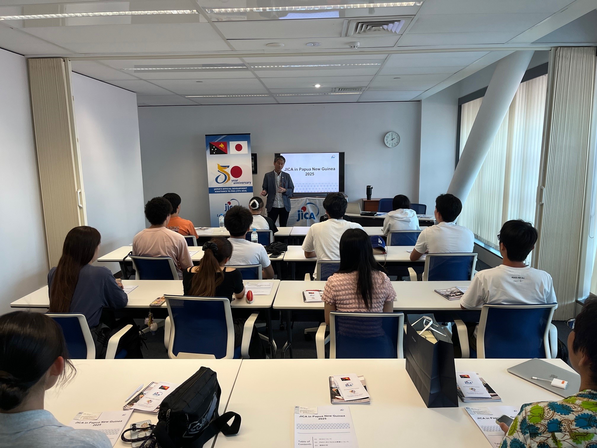 On Friday, 7th November, as part of a study tour in Papua New Guinea, Professor TADOKORO Satoshi from Toyo University and 14 students visited the JICA Papua New Guinea Office. The group departed Japan on November 1 and stayed in Papua New Guinea until November 9, deepening their understanding of the country during their visit.