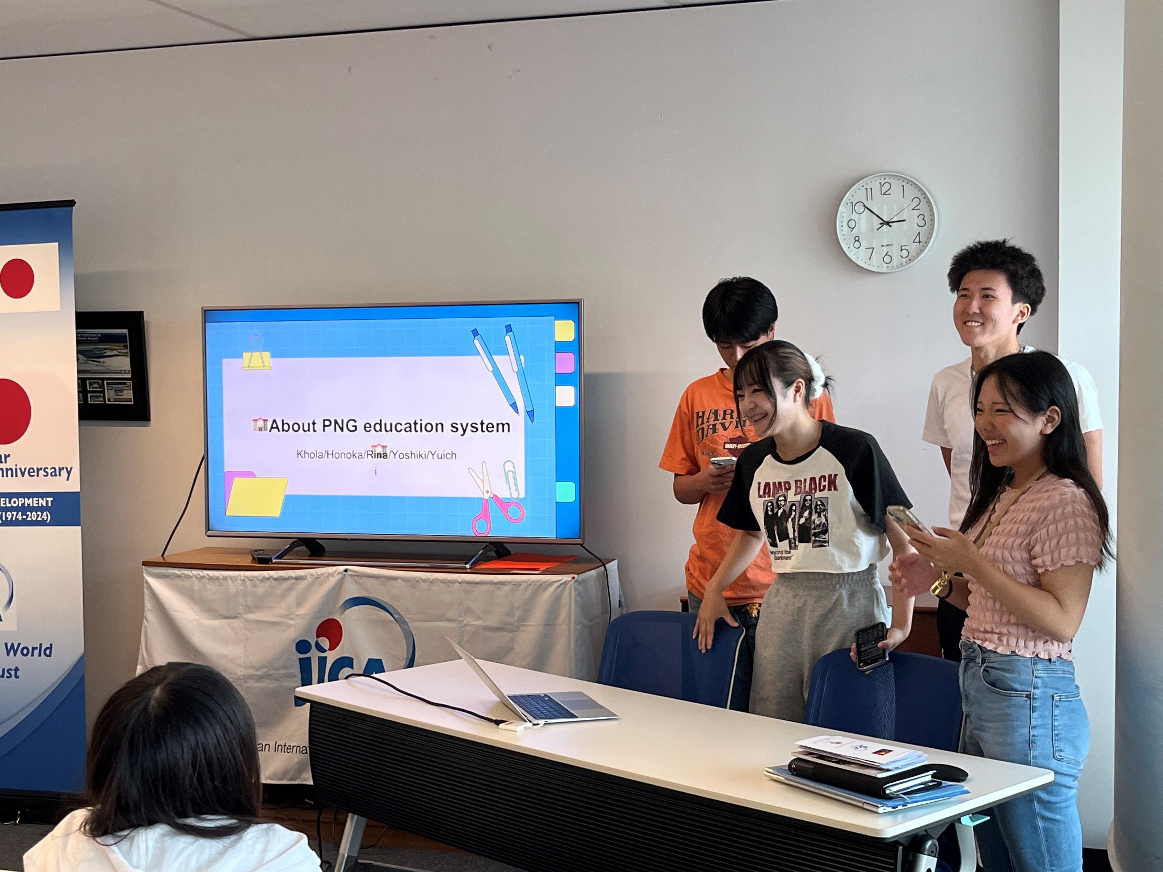 At the JICA office, the visit began with a greeting from Mr. MATSUOKA Hideaki, Chief Representative of JICA PNG Office. This was followed by a presentation by Mr. NAGASE Ryota, Representative, who introduced JICA’s projects and initiatives in PNG. Afterwards, Professor Tadokoro and the students shared their experiences and insights gained during their activities in the country. Finally, an exchange of opinions took place between the students and Mr. KANAMOTO Junta, a JICA Overseas Cooperation Volunteer active in the Sogeri Primary School, as well as Mr. Nagase. The discussion touched on local living conditions and their work, and the students’ strong interest in PNG and international cooperation was clearly evident.