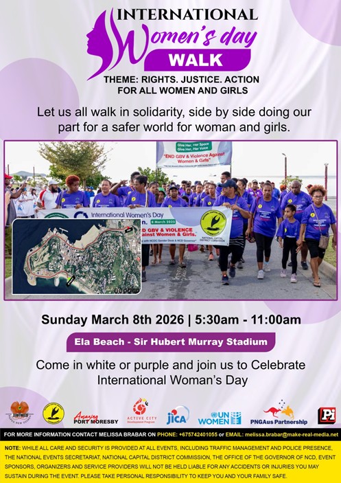 The walk will commence from Ela Beach and proceed to the Sir Hubert Murray Stadium, where a short program will follow.