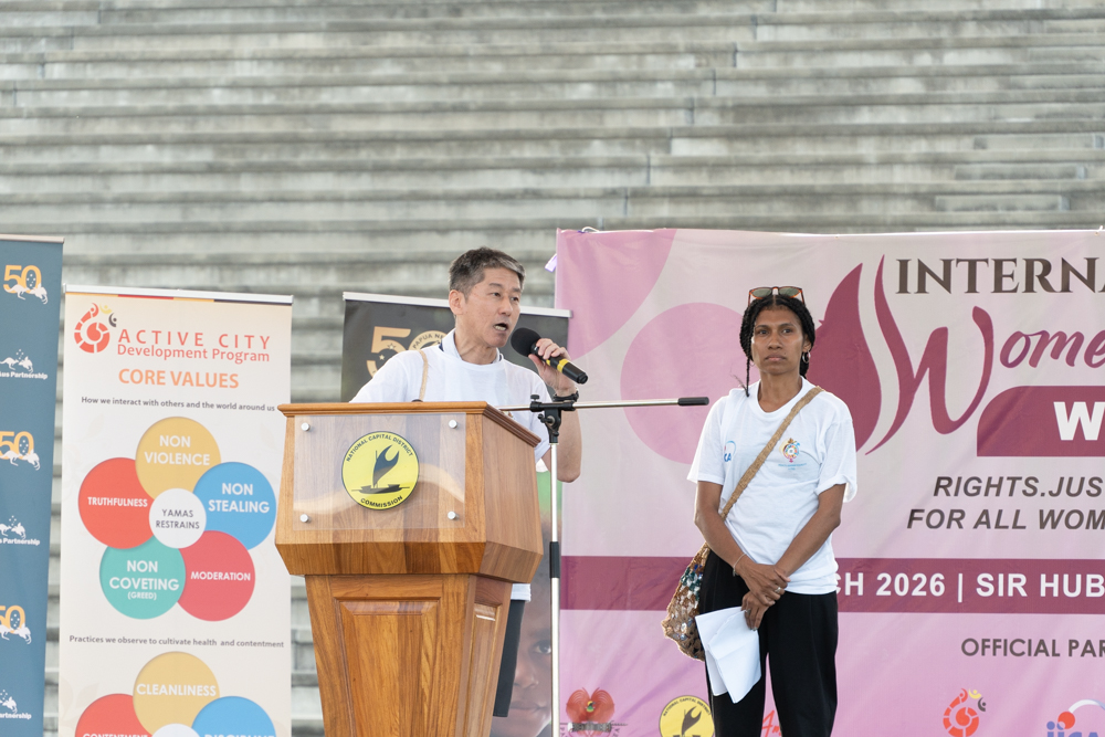 JICA PNG Chief Representative Matsuoka Hideaki and Vivienne, a national staff member, gave a joint speech after the walk