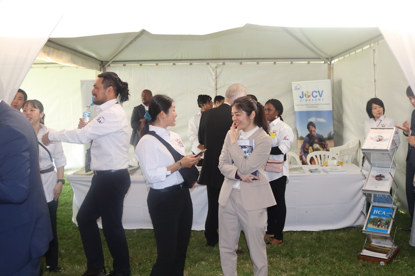 JICA had the pleasure of exhibiting at the Emperor’s Birthday Reception held on 11th of March, a beautiful celebration filled with culture, connection and collaboration. At the start of the reception, a musician Ms. Prudence Katomeni Mbofana, who once studied music under a JICA volunteer, sang the national anthem of Zimbabwe, and music JICA volunteer Ms. Mei Joichi sang the national anthem of Japan. Their beautiful voices captivated the guests. Alongside enjoying delicious Japanese cuisine and experiencing cultural elements such as judo demonstrations and exhibits from Japanese companies, JICA staff and volunteers also took time to network with representatives from a wide range of sectors, including education, sports, culture, agriculture and health. It was a wonderful opportunity to showcase JICA’s ongoing work and build meaningful relationships that may lead to future collaborations.