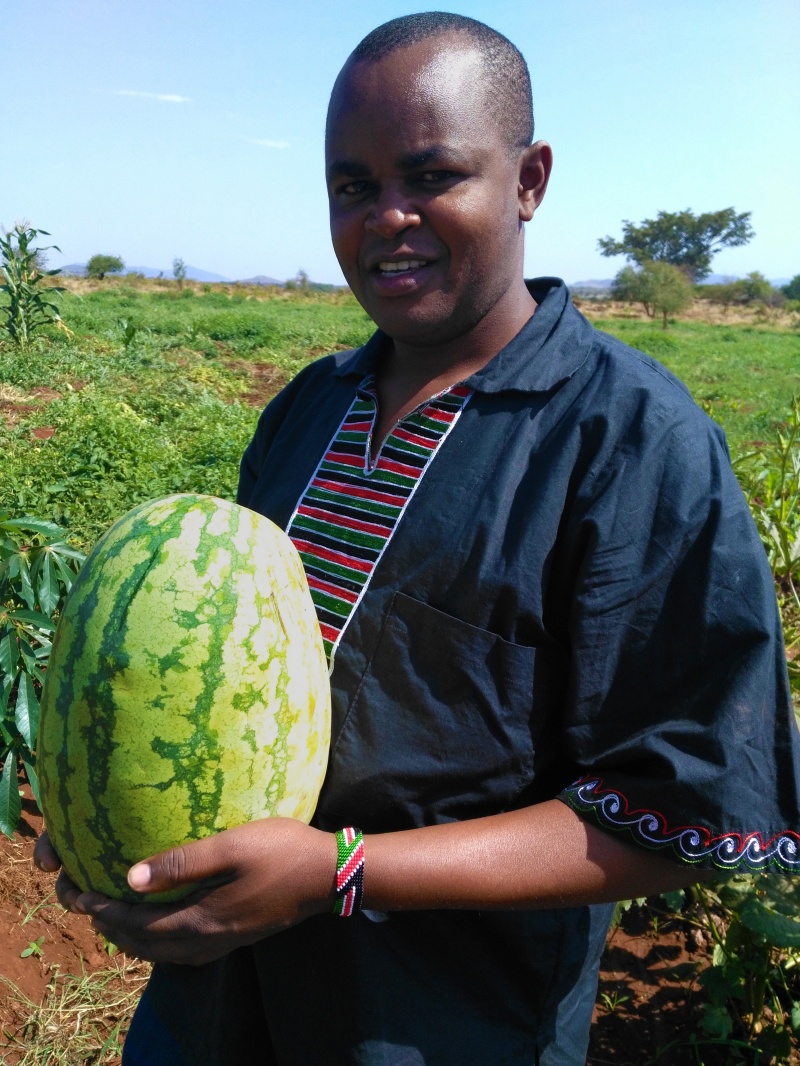 (Samuel Munguti tenant une pastèque dans sa ferme à Simba, au Kenya, en 2016/Photo : Samuel Munguti)