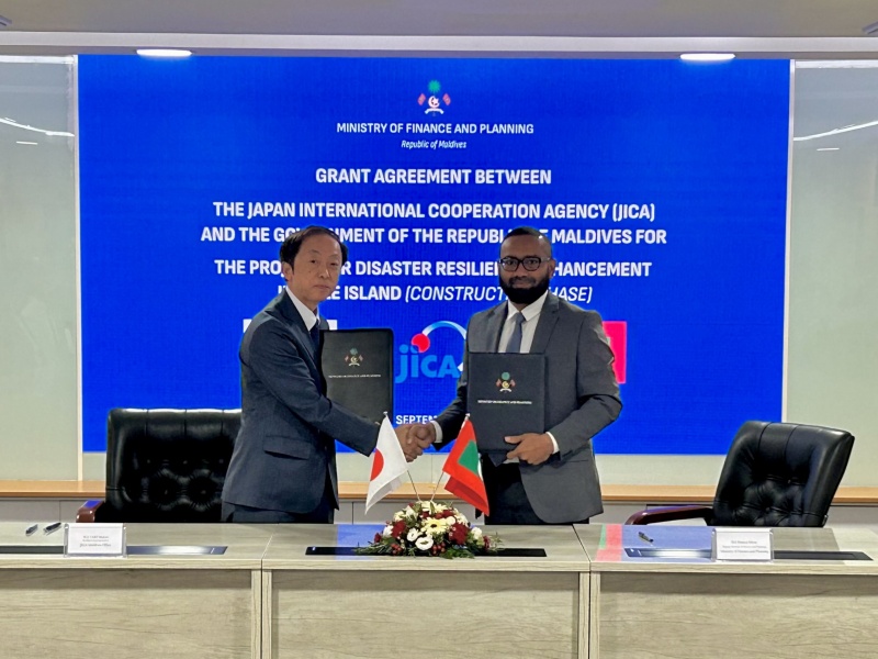 Le 9 septembre, l'Agence japonaise de coopération internationale (JICA) a signé un accord de don avec le gouvernement de la République des Maldives, dans la capitale Malé, afin d'apporter une aide non remboursable au projet de renforcement de la résilience aux catastrophes sur l'île de Malé. À cette occasion, le vice-ministre des finances et de la planification de la République des Maldives, Hassan Miras, et le représentant résident du bureau de la JICA aux Maldives, Taki Motoo, ont procédé à un échange de signatures.