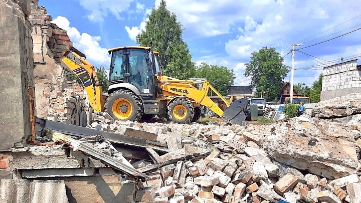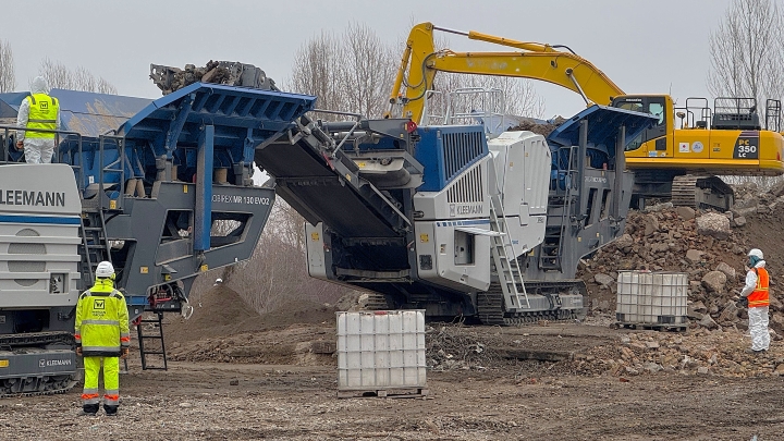 キーウ州ボロディアンカの瓦礫処理ラインと重機