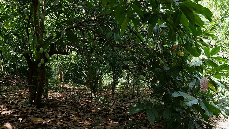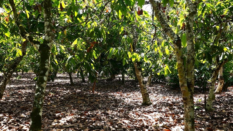 適切に管理されているカカオ畑。病害虫の発生が少なく、カカオの品質も高いです