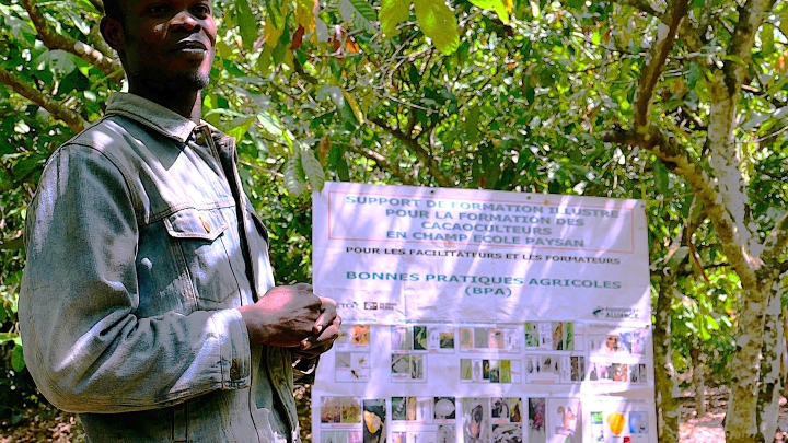 一部の農協では農民対象に減農薬による安全・安心なカカオ栽培技術研修が行われています