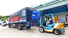 ベトナムに対し供与する緊急援助物資は、10月17日にベトナム中部地域にあるダナンへ到着しました。10月19日14時(現地時間)よりダナン国際空港にて、ベトナム農業農村開発省防災総局側からドアン・ティ・テュエット・ガー科学技術国際協力部長が、日本側から在ベトナム日本国大使館の矢ヶ部義則ダナン領事事務所長、JICAベトナム事務所の小林龍太郎次長らが出席し、同物資の引渡式を実施しました。
