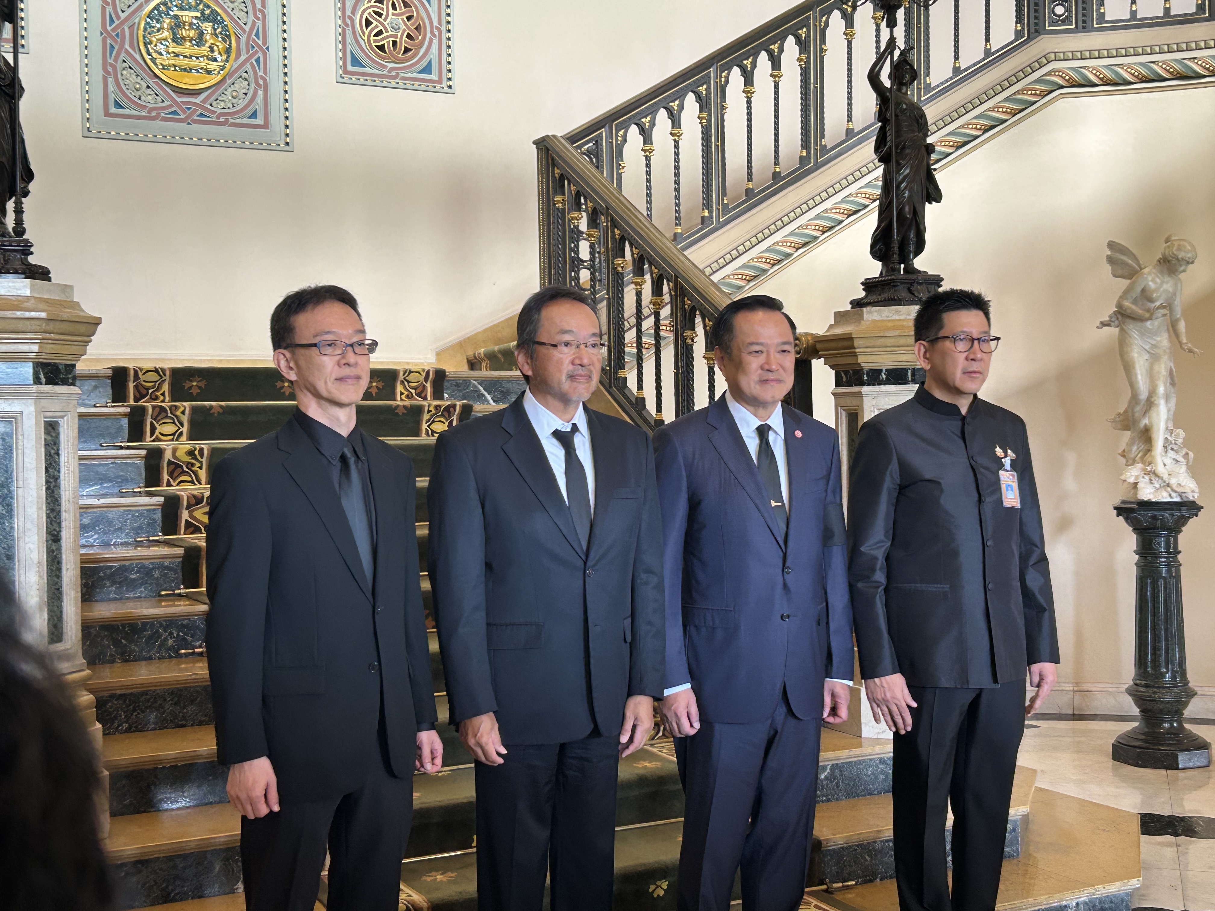 中央左よりアヌティン首相、大鷹大使、作道所長