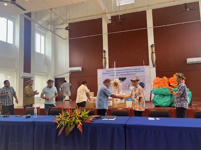 ミクロネシア連邦で発生した油漏れ事故被害に対して、国際協力機構(JICA)が供与した緊急援助物資が、同国に引き渡されました。