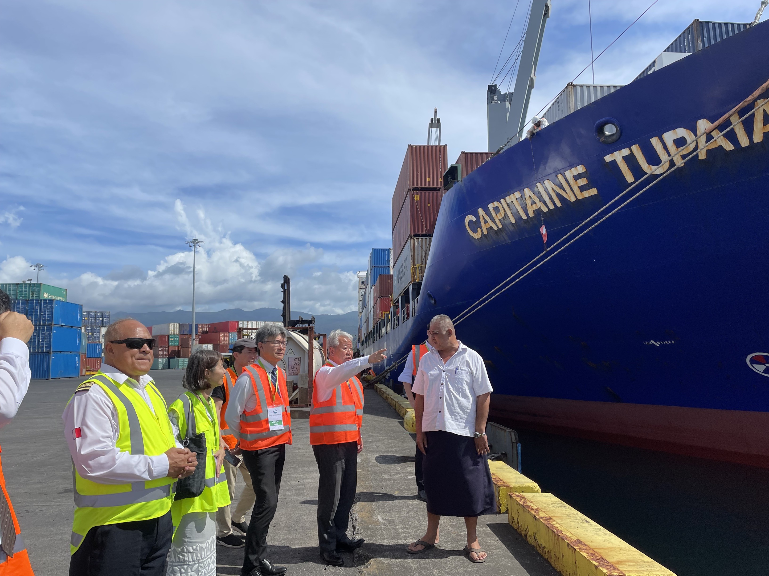 アピア港の視察では、無償資金協力「アピア港安全向上計画」など過去の協力で整備された壁、防波堤、コンテナヤードなどの港湾施設が、現在も主要港として活用されていることを確認しました。サモアレスリング協会に配属されている、JICA海外協力隊員(レスリング)の活動視察では、シニアクラスの指導を見学し、隊員を激励しました。また日々の指導や国際大会への積極的な参加を通じ、隊員活動がサモアにおけるレスリングやスポーツの振興に寄与していることを確認しました。