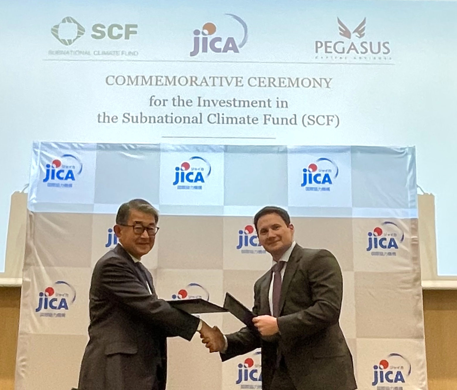 国際協力機構(JICA)は、2025年12月24日、開発途上地域の気候変動対策に関連するインフラに投資を行うGlobal Subnational Climate Fund SCSpに対する出資契約に調印し、2026年4月24日に東京で調印式典を開催しました。式典には、両組織を代表してPegasus Capital AdvisorsのDavid Cogut共同マネージングパートナーとJICAの原 昌平理事が出席しました。