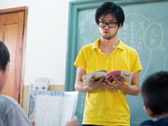 兵庫県の小学校教諭の羽石瑛(あきら)さん。2017年7月から、日系社会青年ボランティアとしてアスンシオンの日本語学校に派遣されている