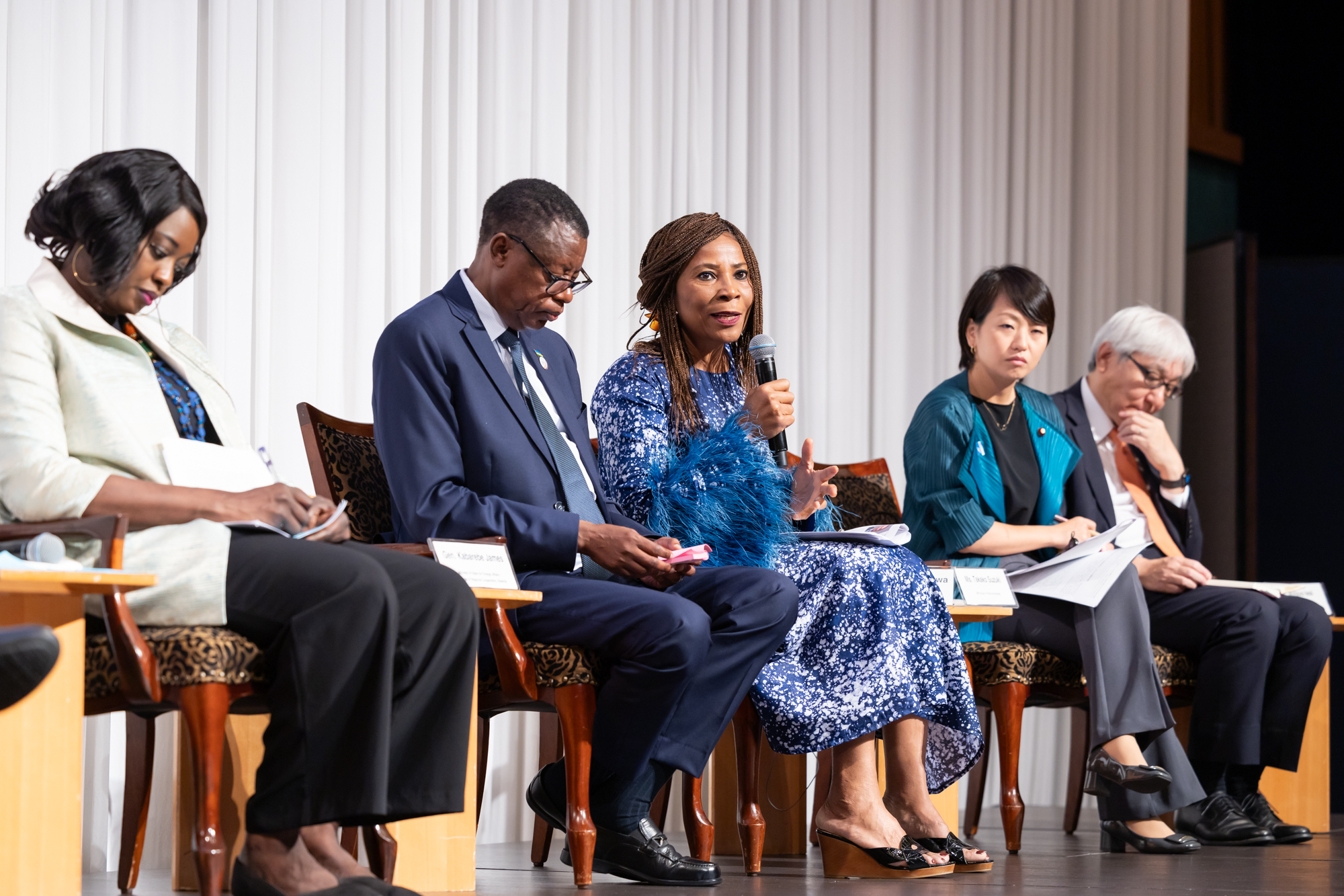 ムボゲバUNDPアフリカ局特別アドバイザーおよび上野JICAアフリカ部次長がモデレーターとなり、日本とアフリカの若者代表5名とミドル・シニア世代代表4名をパネリストとして、これまでの若者の提言の一連プロセスから導き出された以下の3つのテーマについて議論を行いました。