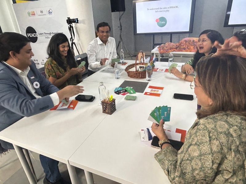 インド中央部テランガナ州政府の女性起業家支援機関We-Hubとの共催のもと、ヘラルボニーによるDE&I研修を初めて日本国外で実施しました。研修では、行政官幹部や現地スタートアップのCEOなど約100名の参加者が、チームでゲームを楽しみながらマイノリティの視点を疑似体験し、障害の「社会モデル」や多様性への理解を深めました。アートを通じて障害のイメージを変えるヘラルボニーの取組に対しても大きな関心が寄せられました。