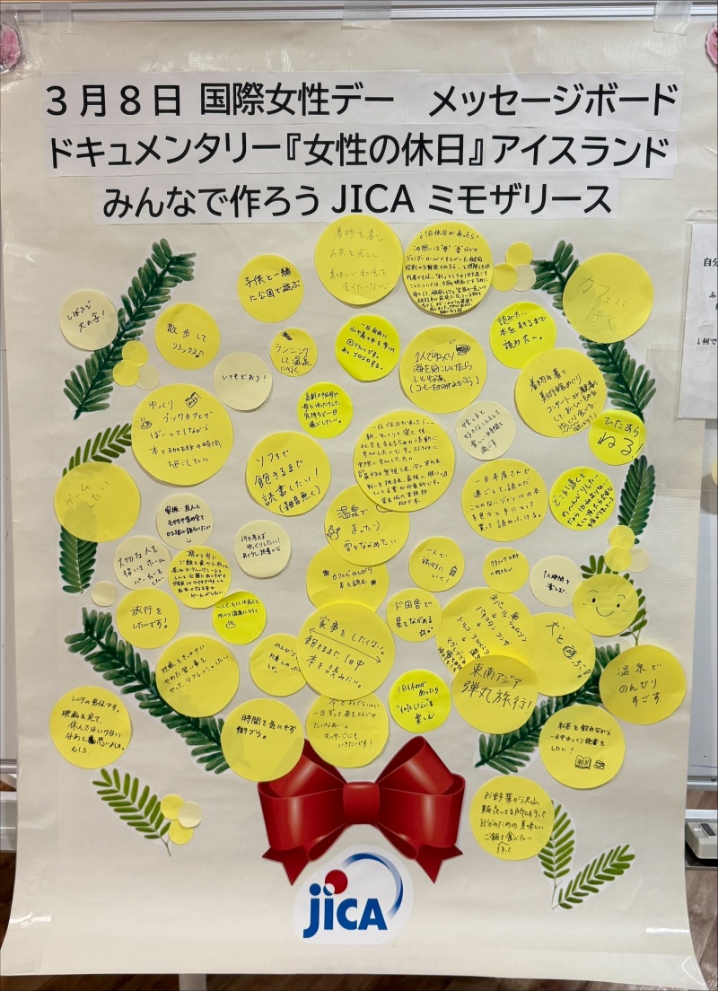 | JICA本部 | ドキュメンタリー映画(『女性の休日』)の上映を通じて、人々の連帯し、行動を起こすことの意義を再確認しました |