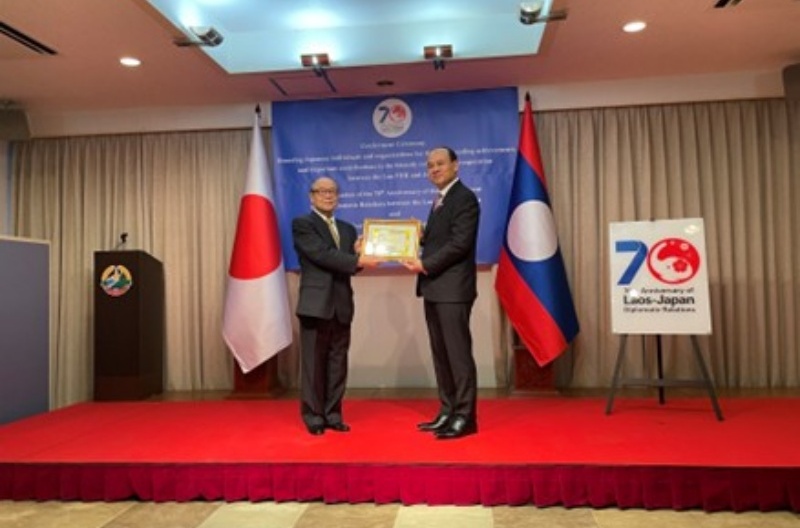 2025年の日・ラオス外交70周年及びJICA海外協力隊派遣60周年を記念し、2026年3月24日、在日本ラオス大使館にて、ラオス政府より日本関係者への表彰が行われ、JICA田中理事長が出席しました。