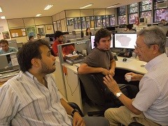 人工衛星からのデータを活用した森林監視システムの運用について指導する日本人専門家(右)