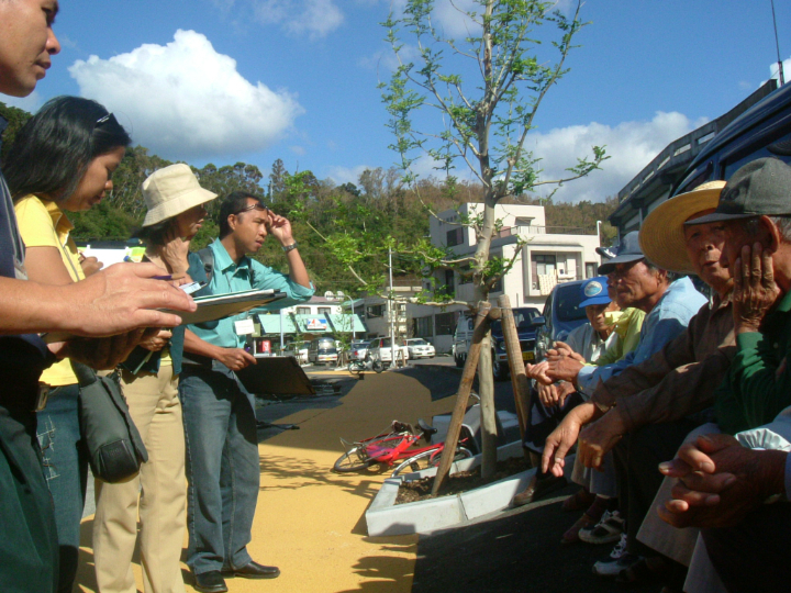 アセアン7カ国の行政官たちを受け入れた研修は、吉成さん自身にとっても、とても満足のいくプログラムになったそうです。写真は、行政官たちが地元住民に聞き取りをしているときの様子。
