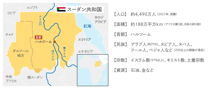 バシール政権の崩壊後は暫定民主化移行政権が発足し、2022年12月には暫定政権の形成に向けた枠組合意が成立。ようやく民主化プロセスが最終段階を迎えたと思われた矢先、懸案だった正規軍SAFと準軍事組織RSFの統合問題を巡って両者が対立したことが、今回の武力衝突の要因だとされています。