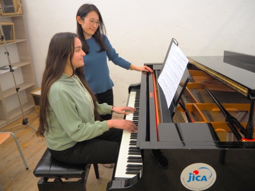 木田麻貴さん(チュニジア派遣、職種:音楽、福島県出身)は、中部沿岸部モナスティール市にある公立のダンス・音楽院に配属され、6歳から18歳の生徒を対象にピアノの個人指導を行いました。生徒のレベルに合わせた練習方法と教材を提案し、演奏技術の向上に貢献しました。また、指導体制を構築するために、現地教員と話し合いを重ね、指導方法や試験の内容、採点方法を検討し、ピアノ指導のカリキュラム作成に取り組みました。