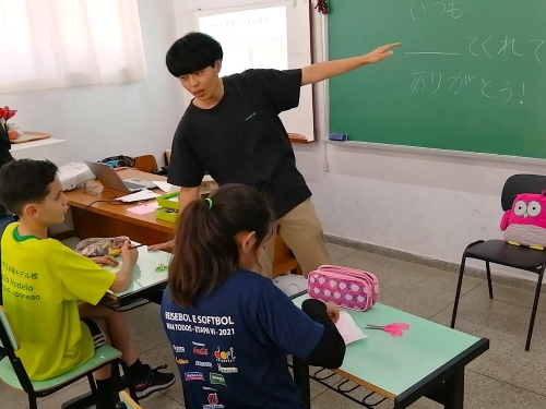 山川雄平さん(ブラジル派遣、職種:日本語教育、福井県出身)は、サンパウロ州マリリア市の日系人協会が運営する日本語学校に配属され、日本語の授業と課外活動などに取り組みました。日系2世、3世の子どもから大人まで、幅広い年齢層に応じた授業内容を提案し、日本語の指導を行いました。また、日本文化紹介や日本料理教室を開催し、日本語学習者以外にも日本文化に触れてもらう機会を提供しました。