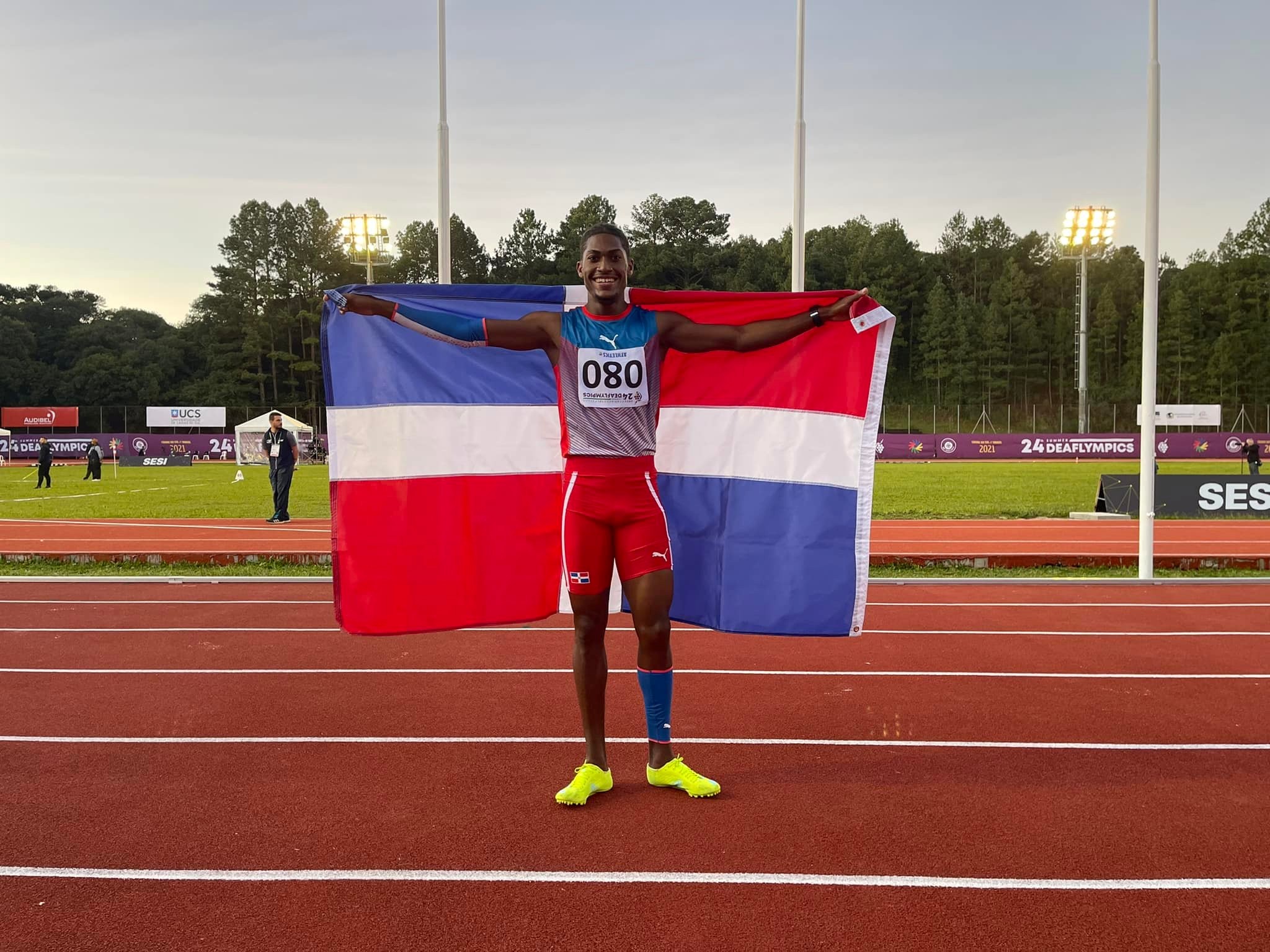 ブラジルで開かれた第24回デフリンピックに参加し、男子200メートルで金メダルを獲得した、ドミニカ共和国のメレンシアーノ・クリストファー選手=廣瀬芽里さん提供