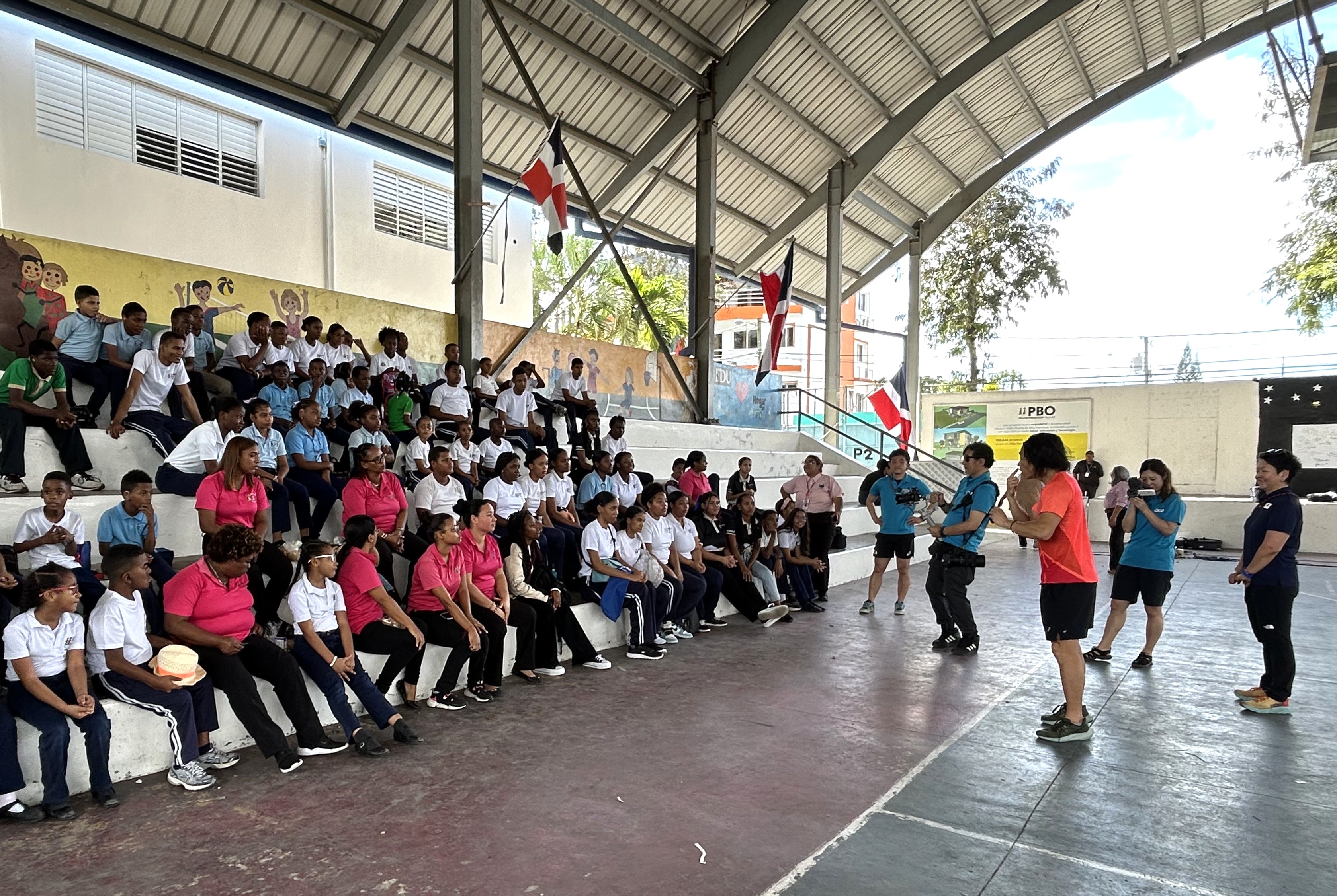 ドミニカ共和国でのスタートランプ贈呈式=一般社団法人日本デフ陸上競技協会提供