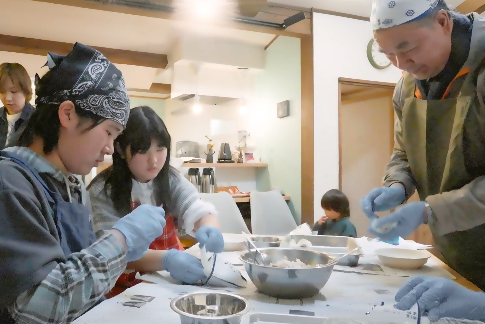 「いただきまーす!」。築100年を超える古民家に、元気な声が響きます。お昼の食卓を囲んでいるのは、地域の子どもやお年寄りたちです。持ち寄った食材で協力して調理し、この日は子どもたちがギョーザ作りに挑戦しました。