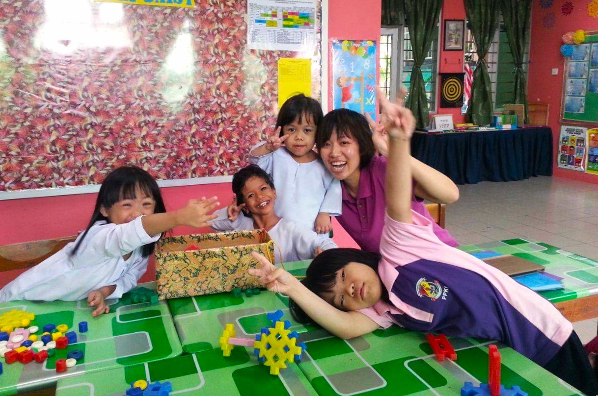 マレーシアの学校でJICA海外協力隊員として活動中の奥結香さん(右から2人目)