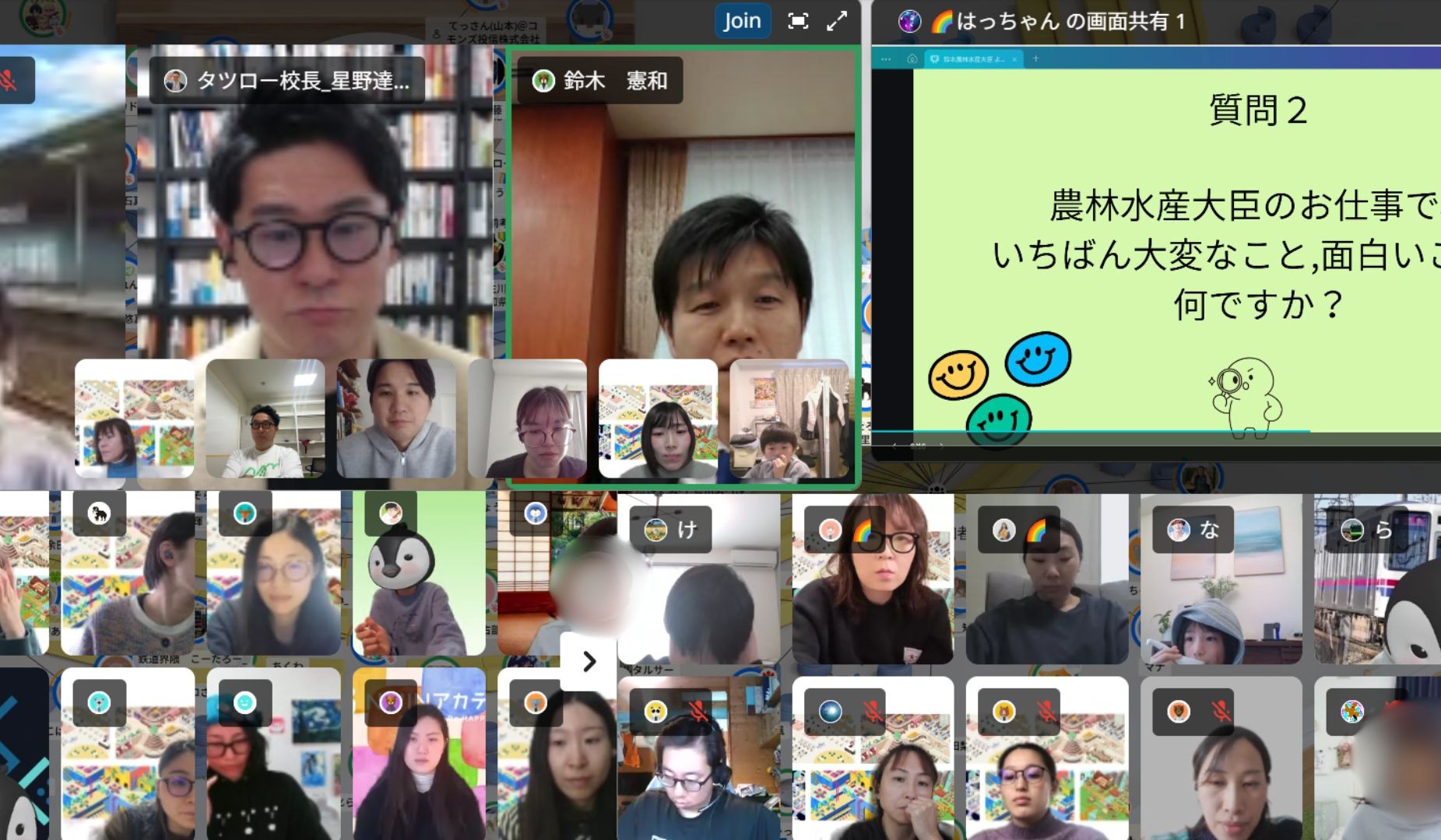 一方、こちらはインターネットの仮想空間のメタバースです。「お仕事で一番大変なことは何ですか?」。画面に現れた鈴木憲和農林水産大臣に質問しているのは、小中一貫のオルタナティブスクール「NIJINアカデミー」の子どもたちです。
