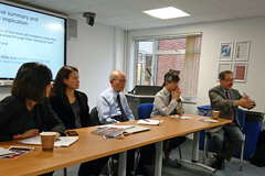 16日には、IDSでセミナーが行われ、メリッサ・リーチIDS所長の司会のもと、ジン・グー新興国問題研究所長、サセックス大学の教員や学生など、約40人が参加しました。まず志賀主任研究員がインドによる途上国の立憲民主主義構築支援の概要について発表した後、下村名誉教授は新興ドナーが自身の被援助経験を生かしてどのように独自の知識を創造し、今後はそれを援助国の立場からどのように被援助国に移転していくかについての理論を発表しました。その後、会場から数多くの質問が出され、活発な質疑応答が行われました。