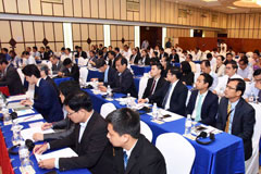 セミナーには、政府関係者、金融機関関係者、大学関係者、研究機関関係者合わせて150人が参加。JICAカンボジア事務所菅野祐一所長による開会のあいさつに続いて、一橋大学大学院経済学研究科教授でJICA研究所客員研究員の奥田英信氏が登壇し、本研究プロジェクトについて紹介しました。